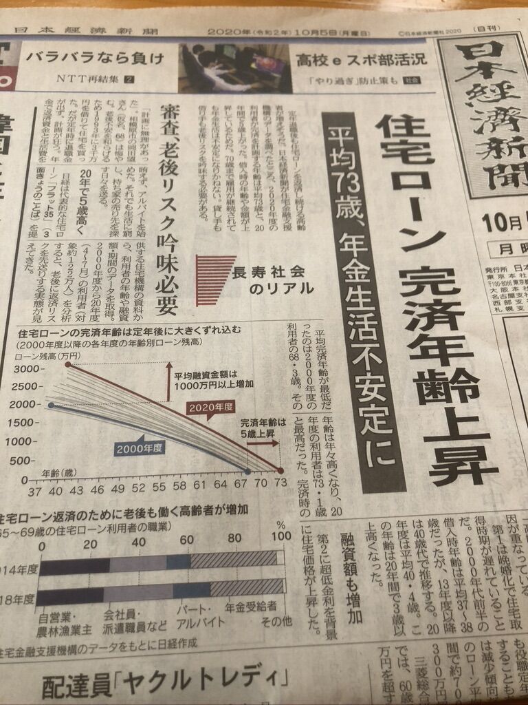 住宅ローンの完済年齢が5歳も上昇していて、平均73歳になっていると言うのです。
