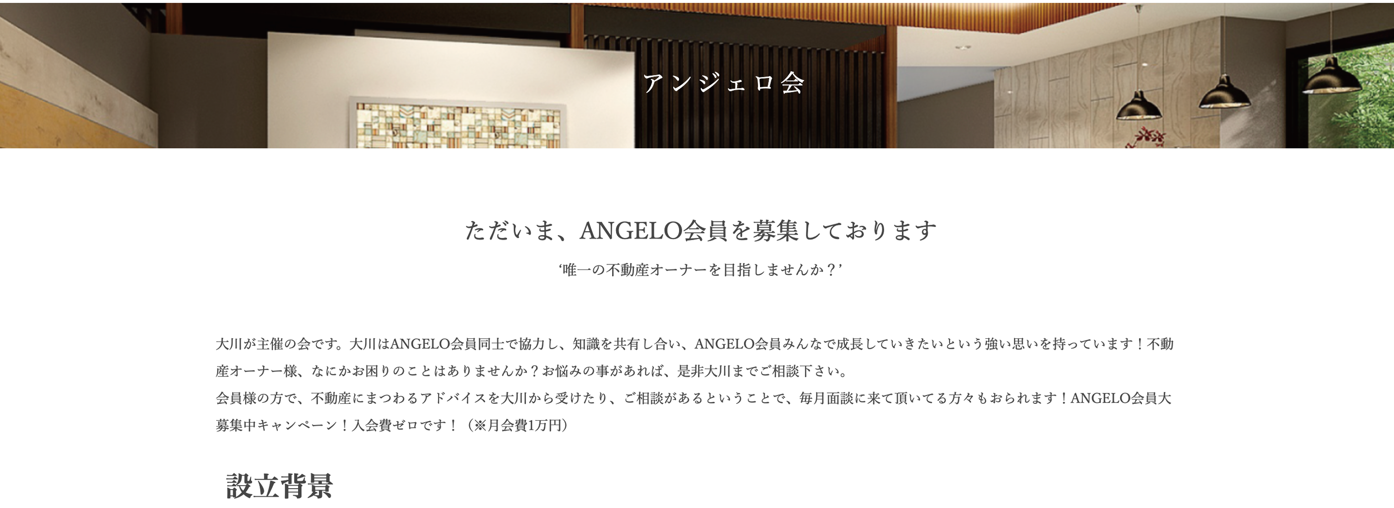 また、運営していた不動産投資家のコミュニティ「アンジェロ会」のページも今は閉じられています。
