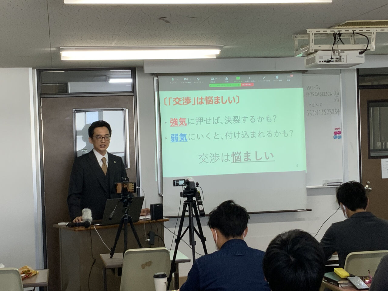 初めて京都からセミナー配信です。 From:ななころ 京都駅そばのセミナー会場より 第95回目のセミナー始まりました! 加藤弁護士&大家さんによる交渉術です。 Zoomでは50名以上の方が参加しています。 ネット環境が無事持ちますように・・・