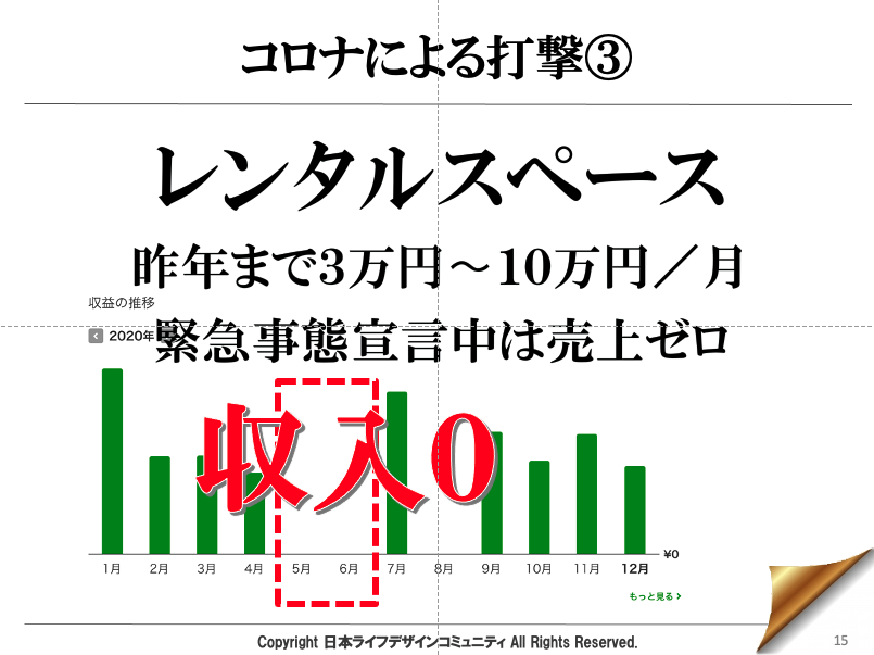 そして、自宅の地下室をレンタルスペースとして貸し出しているが、こちらも収入が激減した。