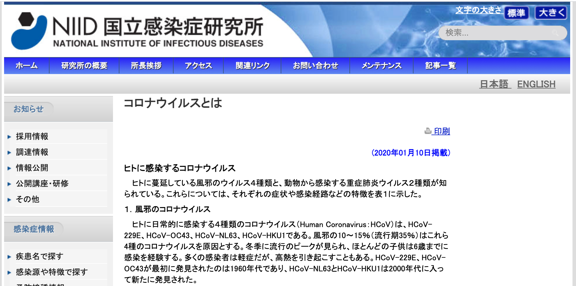 「コロナウィルスとは?」(国立感染研究所)