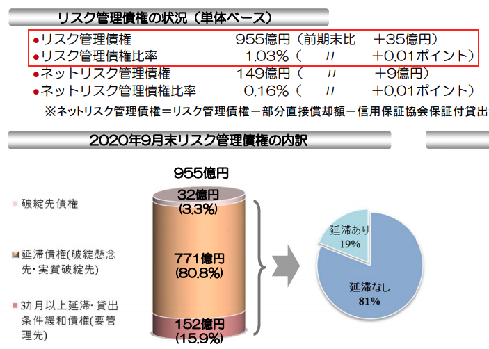それでは、オリックス銀行のリスク管理債権(不良債権)比率ですが、2021年3月期を見ると、「0.46%」となっています。