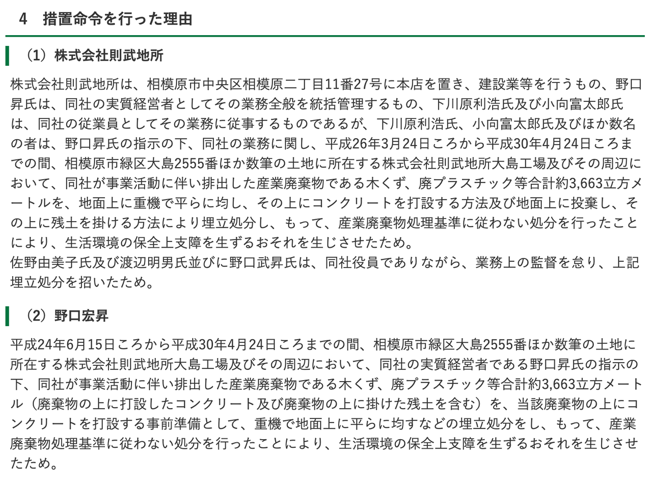 昨年にも産廃の不法投棄で行政処分を受けています。