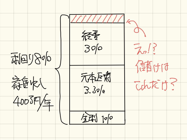 利回り8%に対して、7.3%が引かれてしまうわけですから、儲けが吹っ飛んでしまうこと分かったんです。