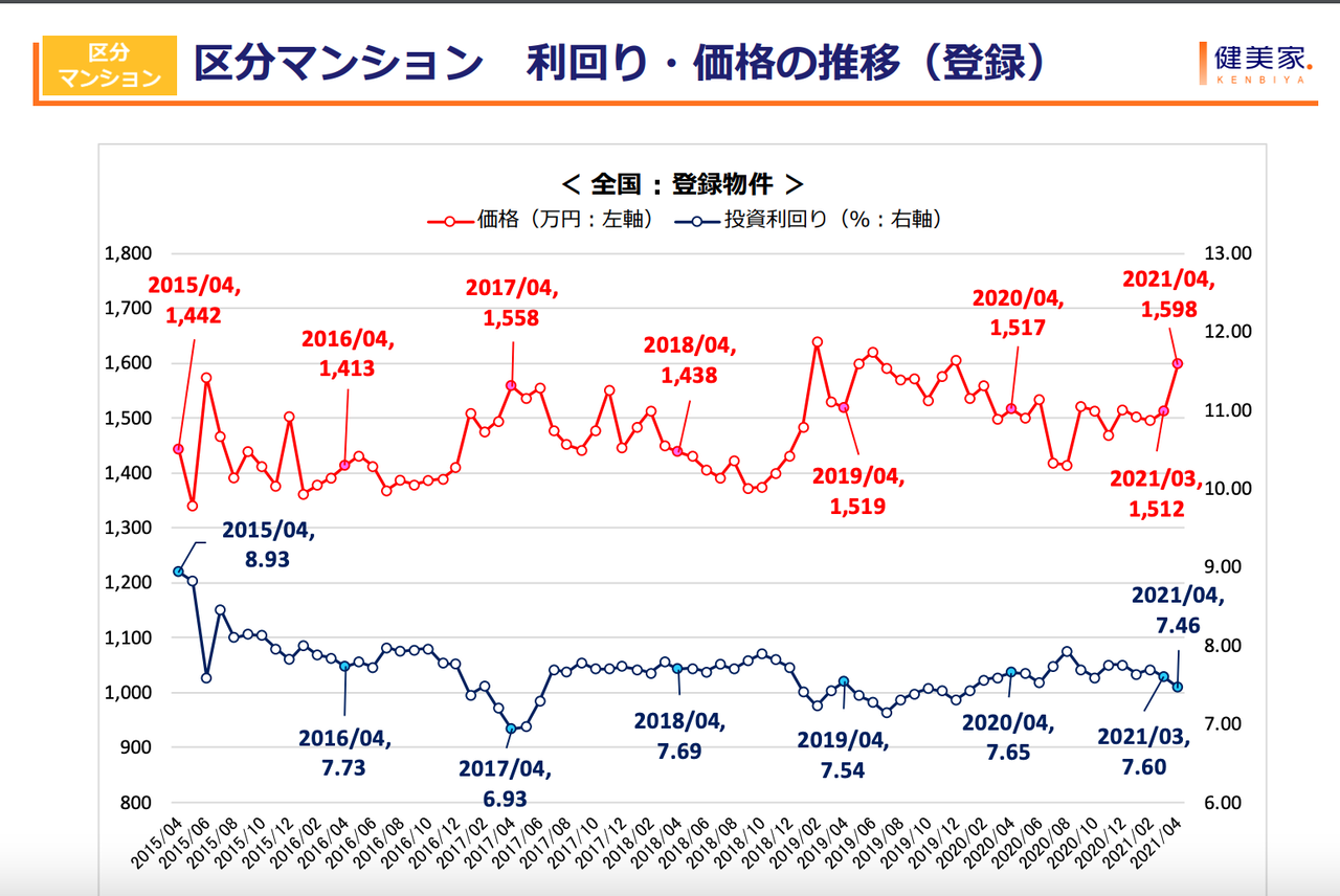一方、株価指数と区分マンション価格は相関関係にあるため、米国の低金利と資金供給により米株の最高値更新が続き、これに牽引された日本株上昇も大きな要因とみられる。つまり、株式投資で増えた資金で区分マンションへ現金投資する投資家も一定数存在するという。