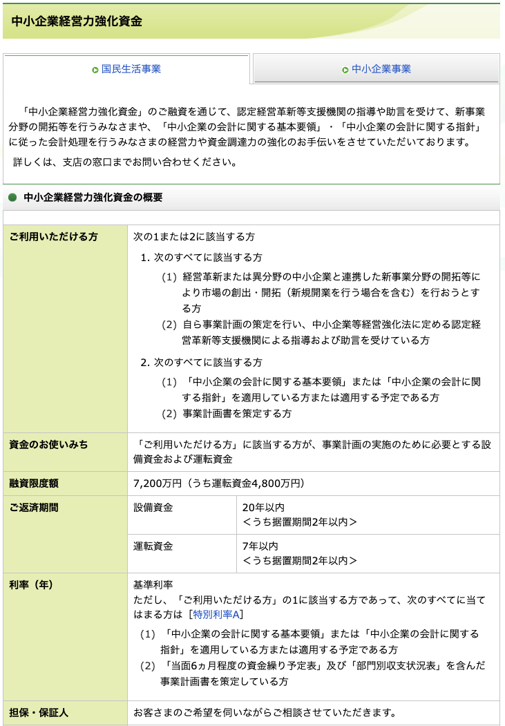 たとえば、前述の創業融資には「新創業融資制度」と「中小企業経営力強化資金」ですと、「中小企業経営力強化資金」の方が金利は低くなります。