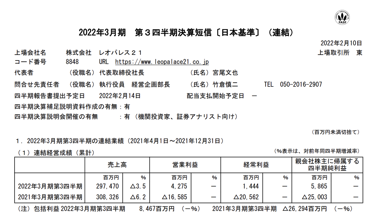 (2022年3月期 第3四半期決算短信より)