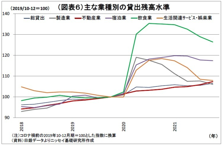 日銀のデータから分析したニッセイ基礎研究所のグラフによると、不動産への融資は一定して伸びている。