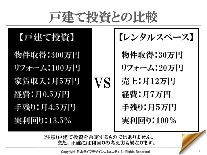 レンタルスペースビジネスは、同じように少額で始められる戸建て投資と比べても、リスク少なく手軽に始められる事業として注目されています。