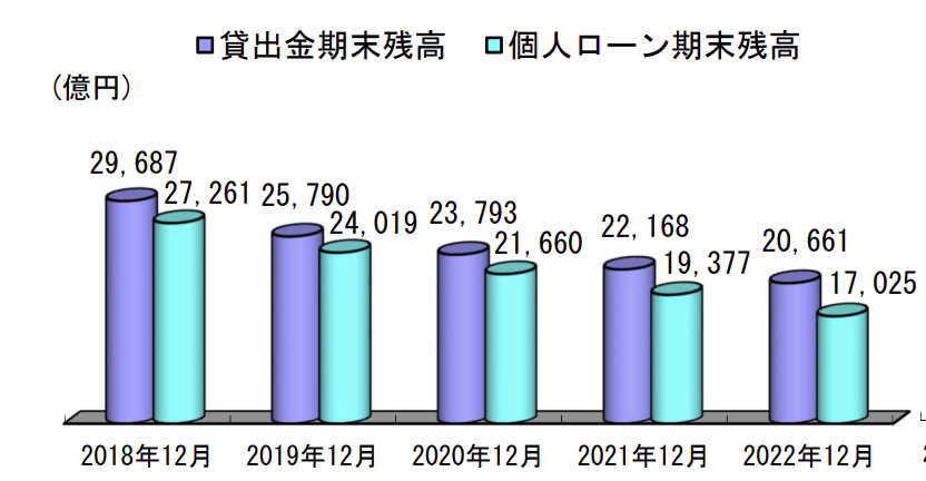 あれだけ積極的だった不動産投資向けローンの融資残高は、とうとう1兆円を割り込んでしまっています。貸してナンボの銀行としてはかんり苦しい。