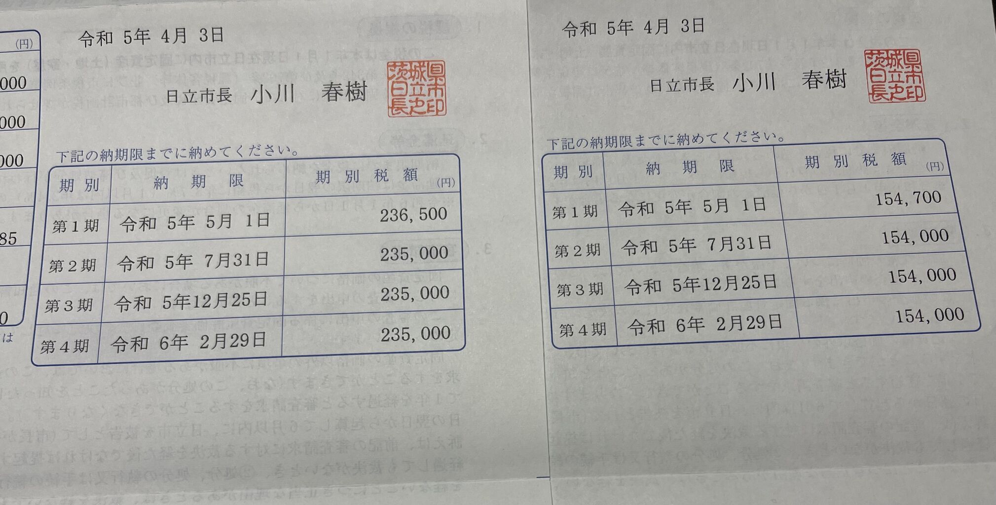 毎年のことながら、日立市分だけで合計150万円以上の税金支払い。約1ヶ月分の家賃収入が吹っ飛ぶのは辛すぎますよ。みなさんの元にも届いているのではないでしょうか!?