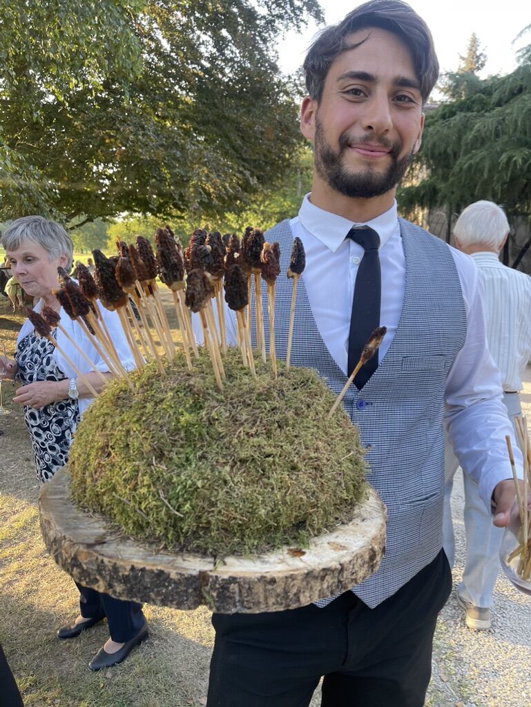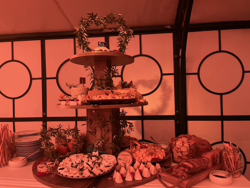 披露宴がスタートするまでの約2時間、会話を楽しんだり、ちょっと変わった食べ物を楽しんだりしました。