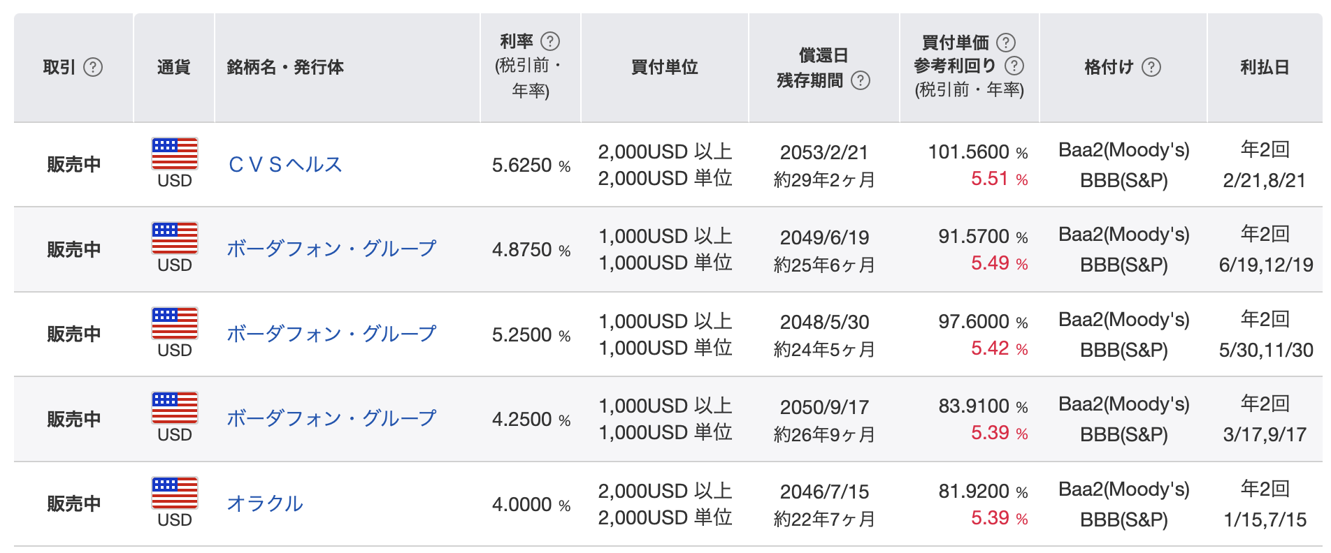 でも、最近では「債権」も、かなり良い利回りになっています。米国債権は、軒並み利回り5%弱を叩き出しています。