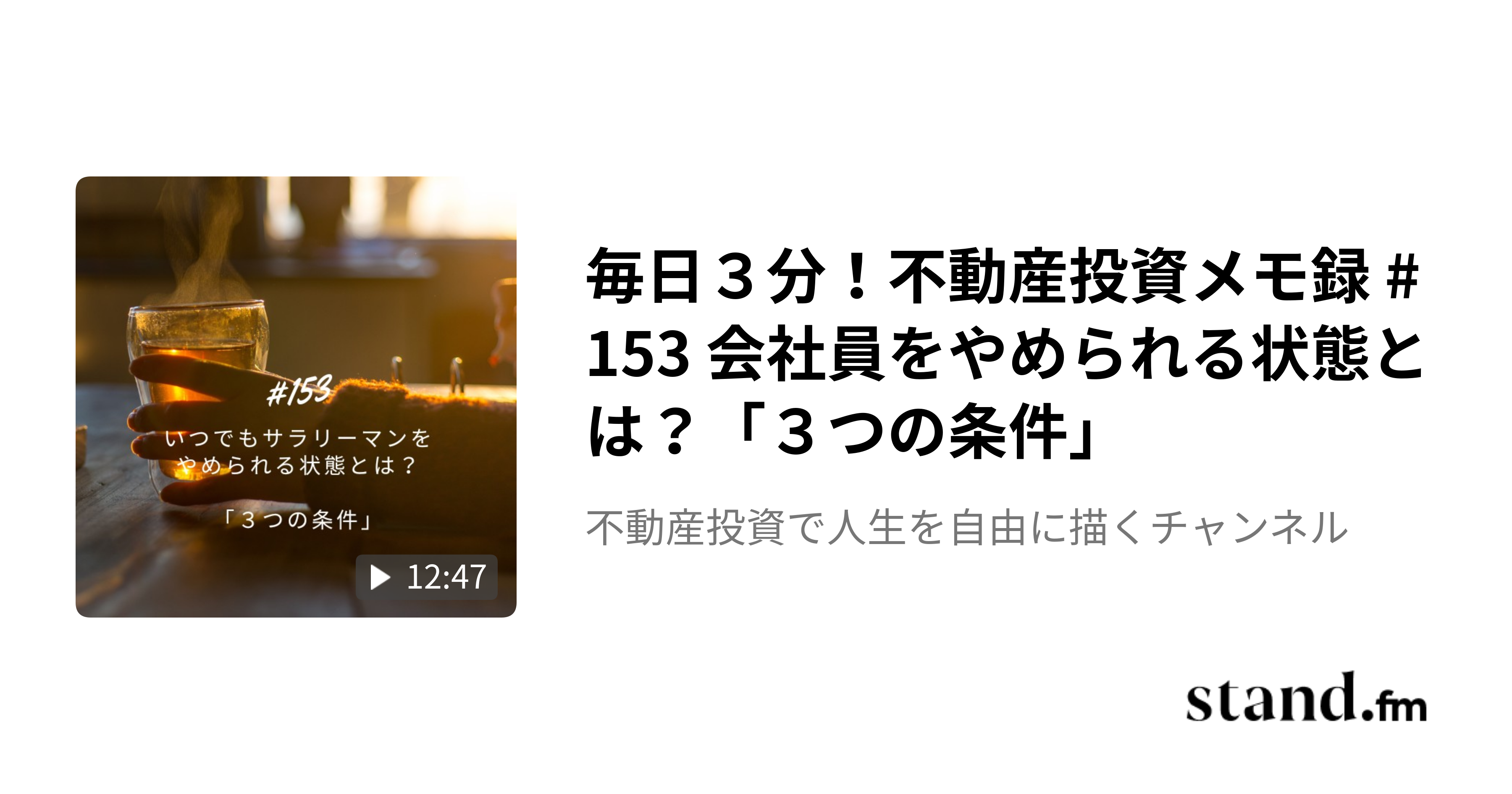 ▼毎日3分!不動産投資メモ録 #153 いつでもサラリーマンをやめられる状態とは?「3つの条件」