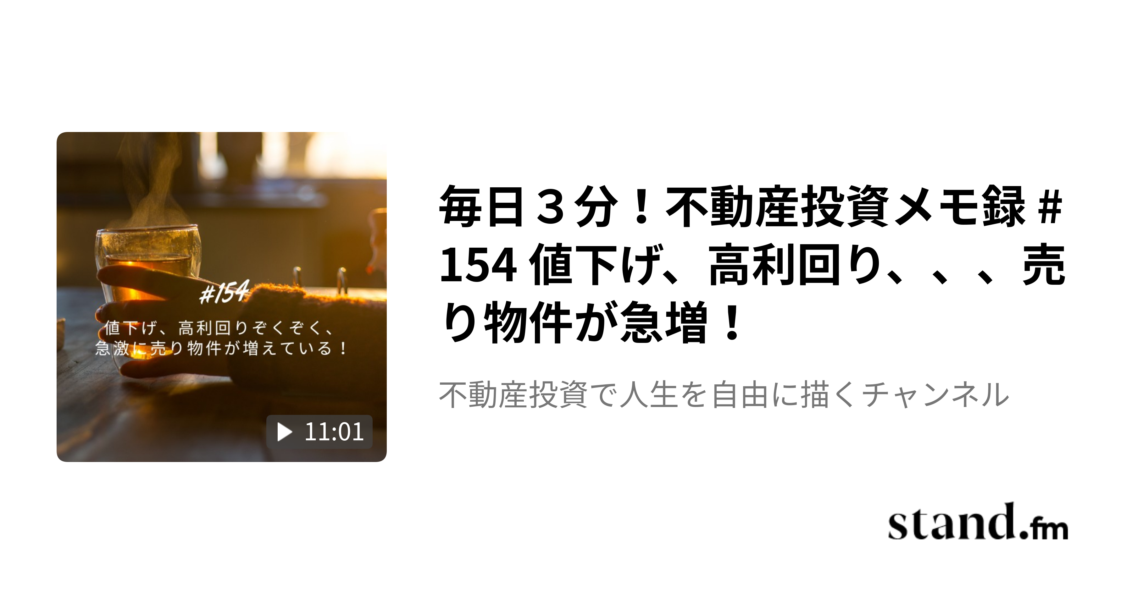 フォロワー150名突破しました!ぐんぐん増えています!! 上記の楽待コラムの内容をStandFM(スタエフ)で音声解説しており、大好評頂いてます。