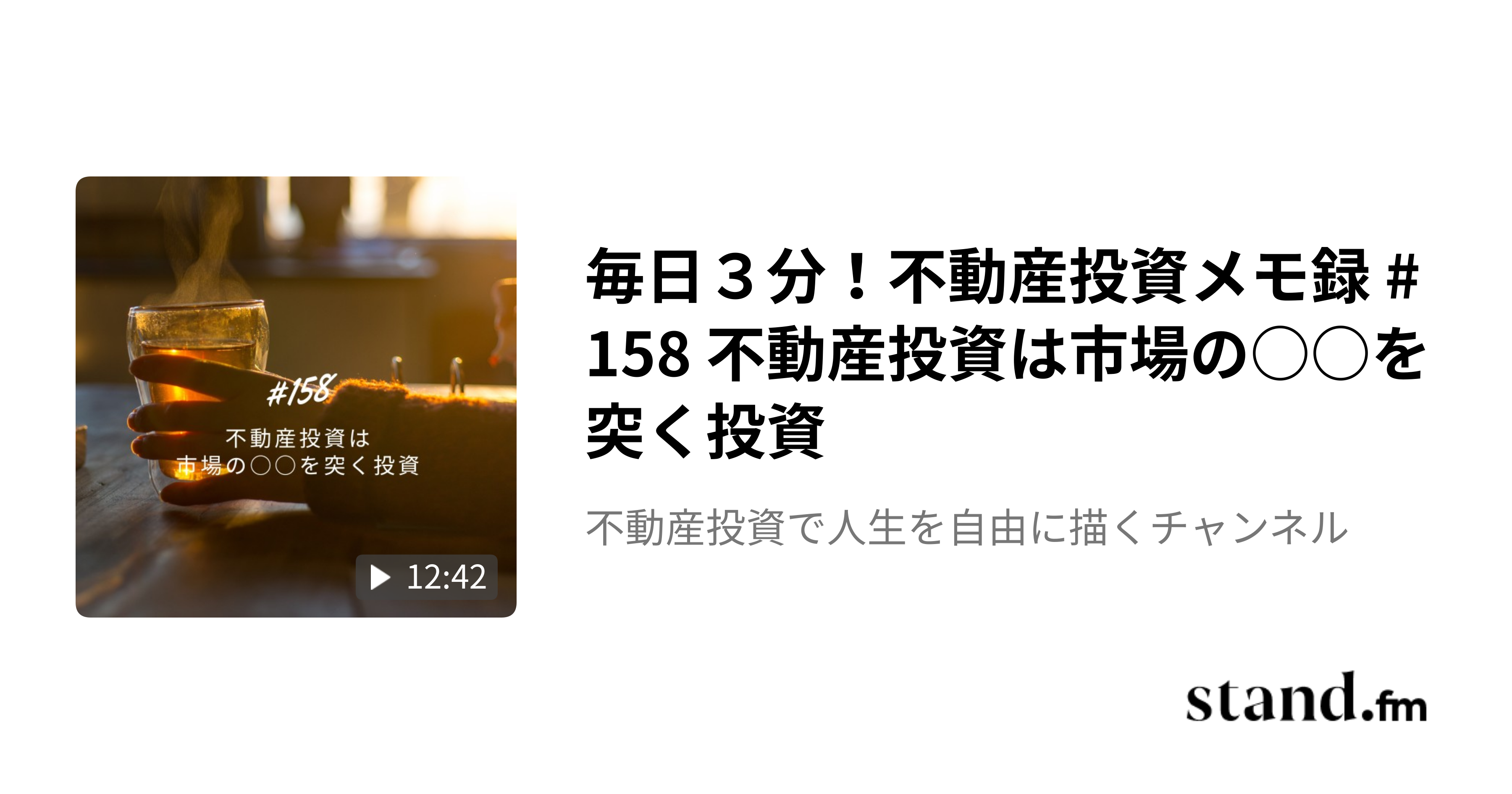 フォロワー150名突破しました!ぐんぐん増えています!! 上記の楽待コラムの内容をStandFM(スタエフ)で音声解説しており、大好評頂いてます。