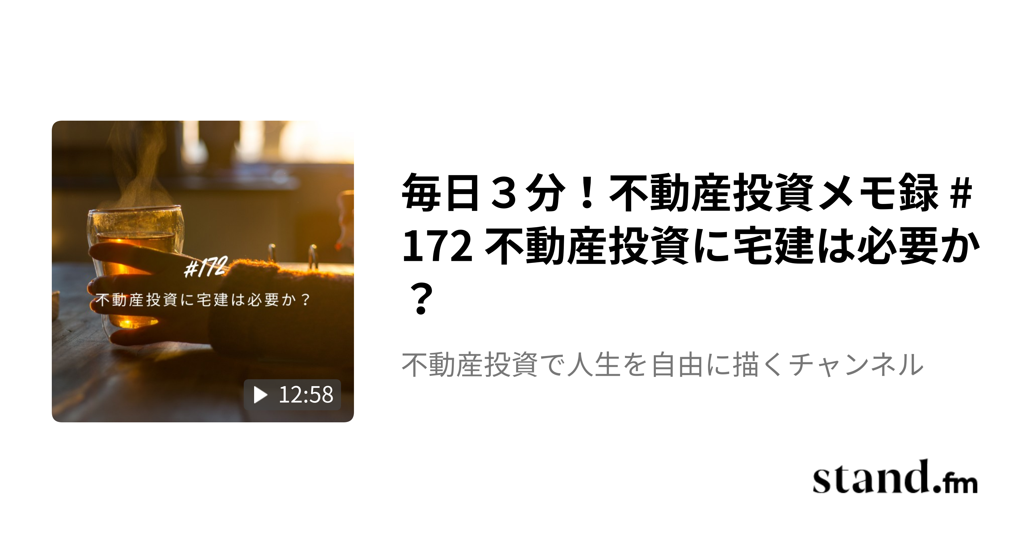 フォロワー160名突破しました!ぐんぐん増えています!! 上記の楽待コラムの内容をStandFM(スタエフ)で音声解説しており、大好評頂いてます。