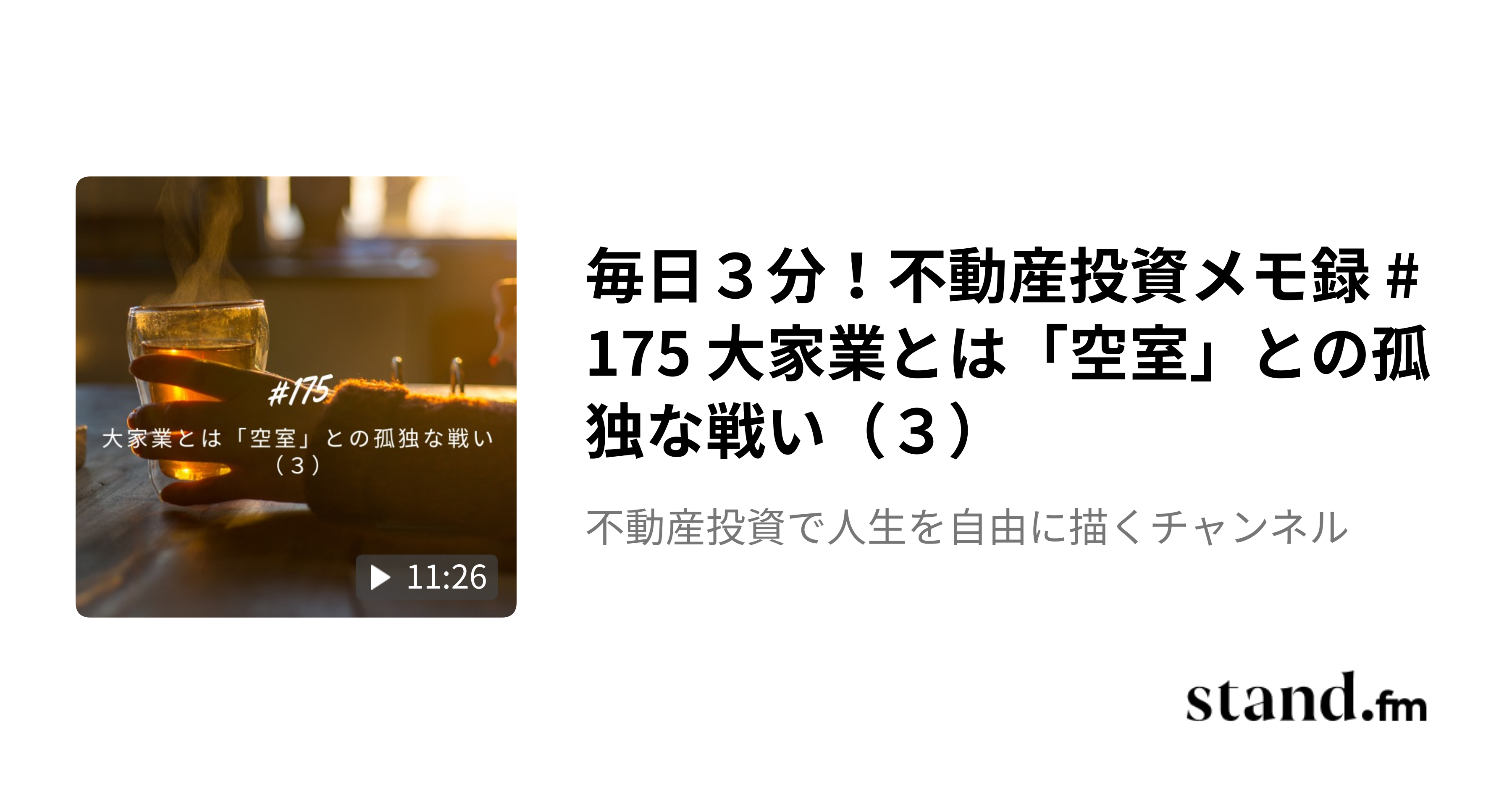 フォロワー160名突破しました!ぐんぐん増えています!! 上記の楽待コラムの内容をStandFM(スタエフ)で音声解説しており、大好評頂いてます。