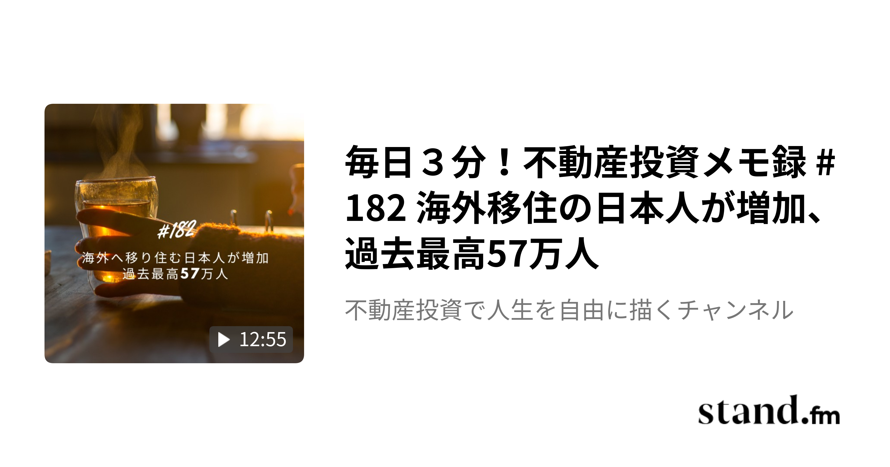 ▼毎日3分!不動産投資メモ録 #182 海外へ移り住む日本人が増加、過去最高57万人