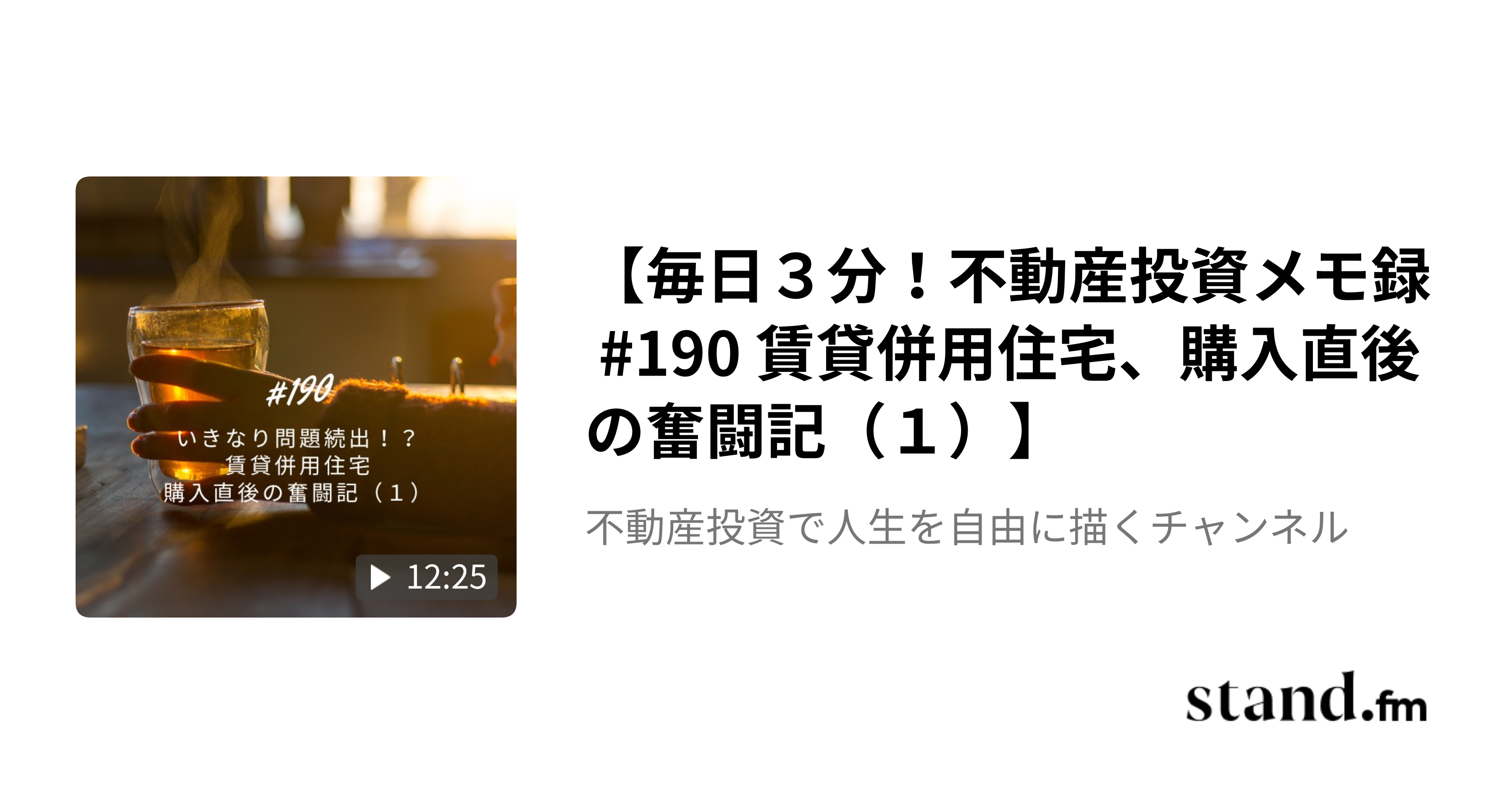 フォロワー170名突破しました!ぐんぐん増えています!! 上記の楽待コラムの内容をStandFM(スタエフ)で音声解説しており、大好評頂いてます。