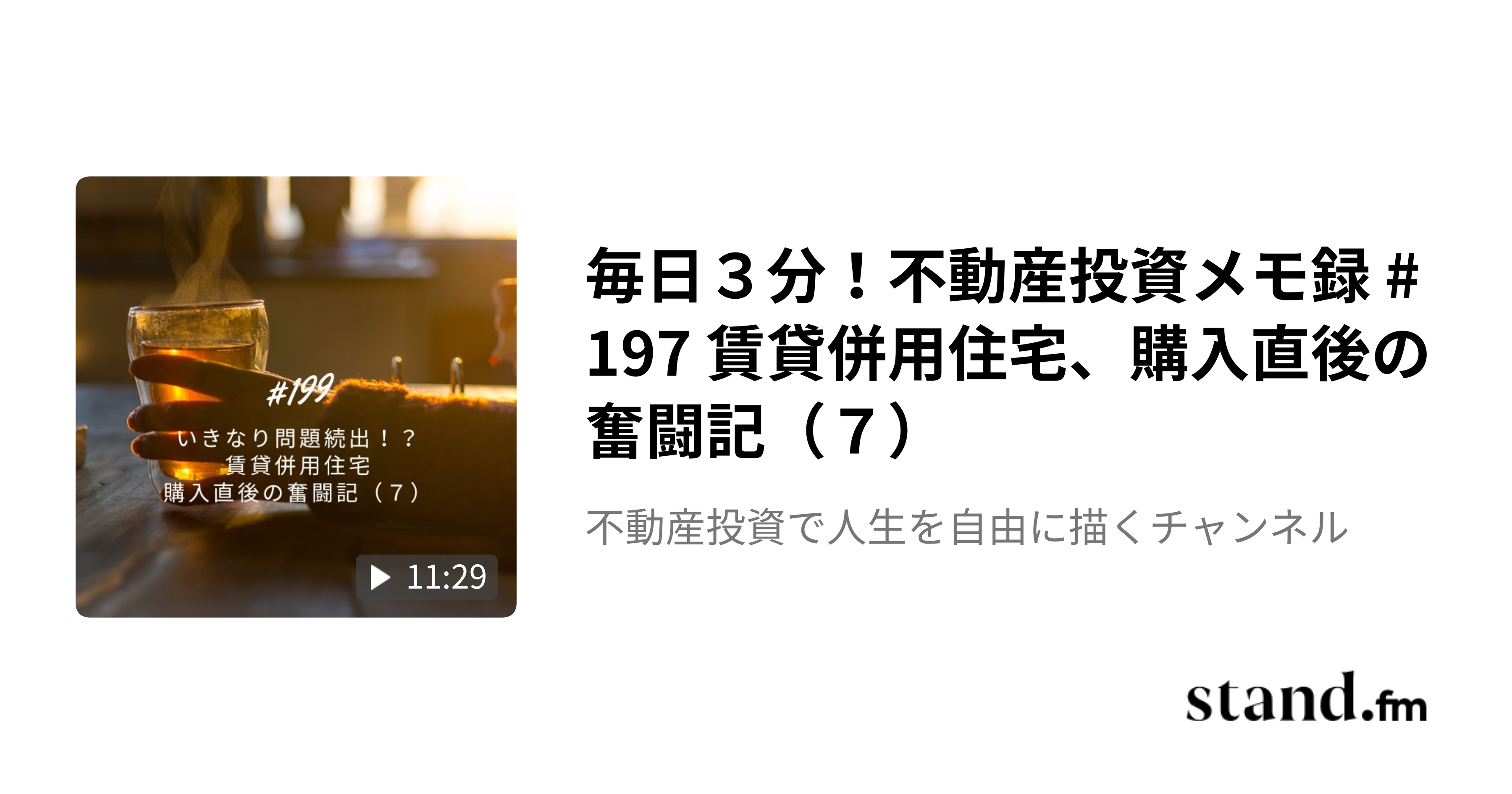 フォロワー180名突破しました!ぐんぐん増えています!! 上記の楽待コラムの内容をStandFM(スタエフ)で音声解説しており、大好評頂いてます。