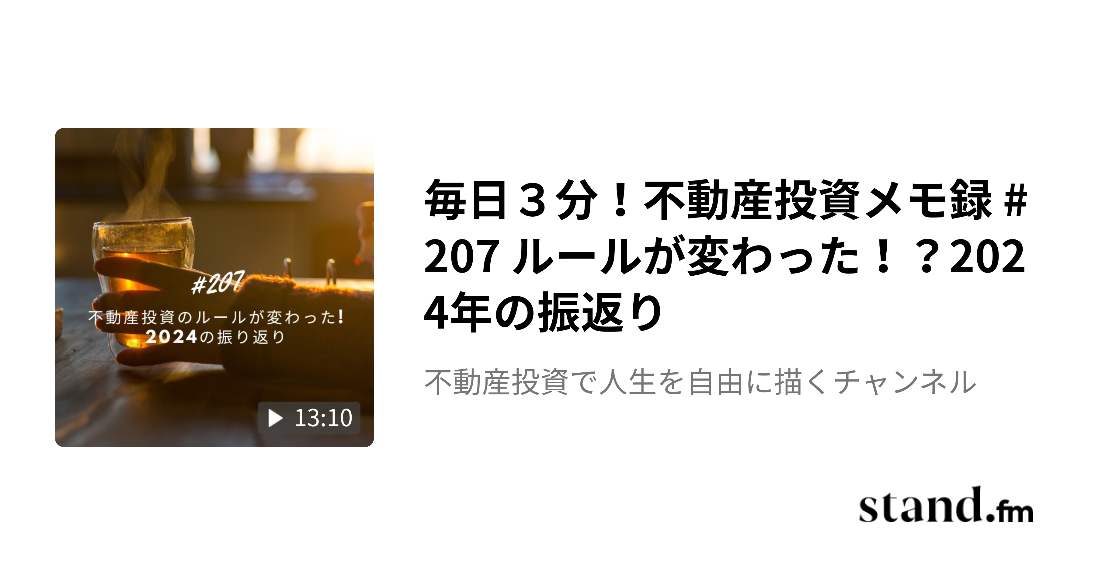 フォロワー180名突破しました!ぐんぐん増えています!! 上記の楽待コラムの内容をStandFM(スタエフ)で音声解説しており、大好評頂いてます。