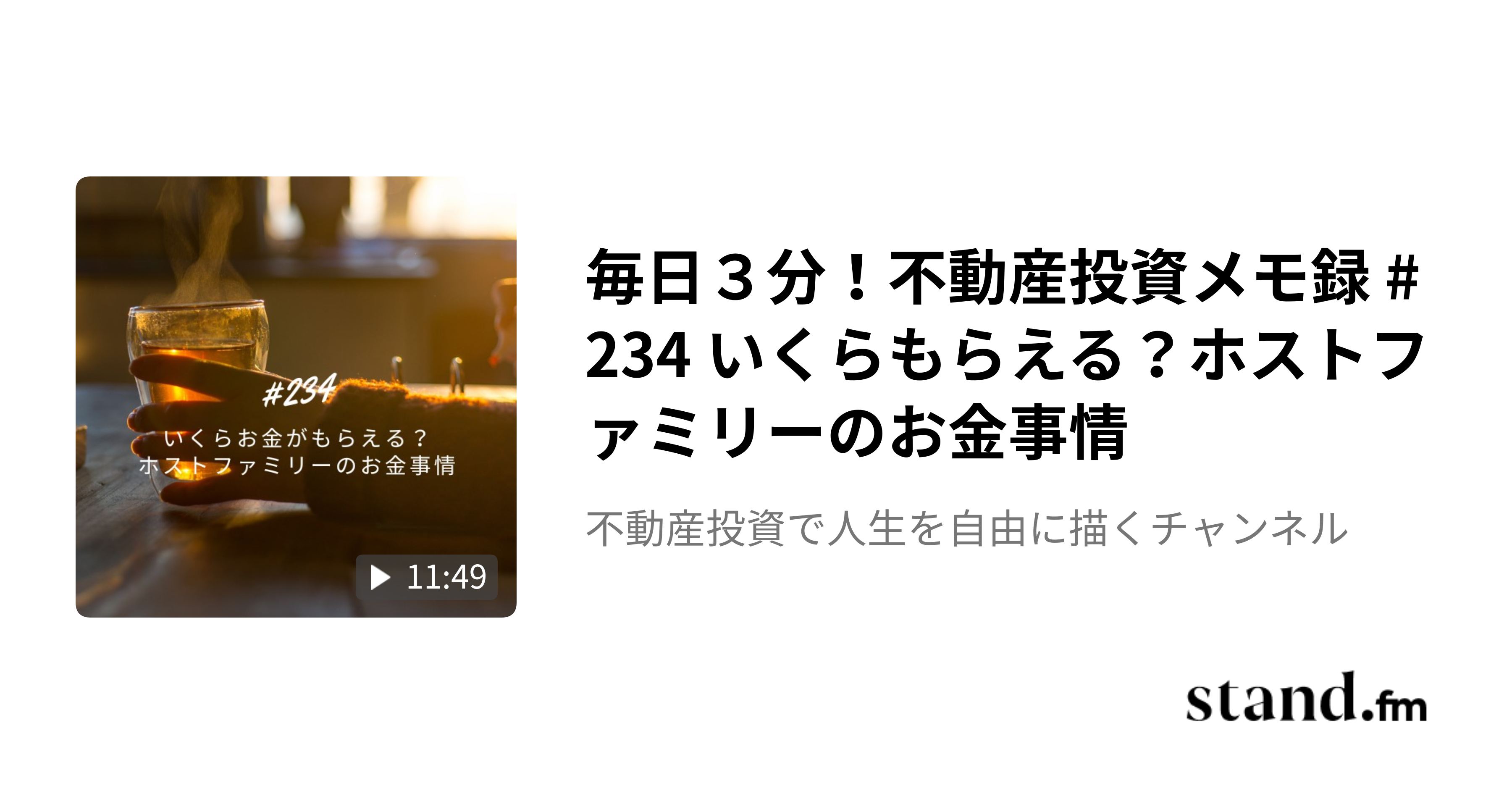 フォロワー200名突破しました!ぐんぐん増えています!! 上記の楽待コラムの内容をStandFM(スタエフ)で音声解説しており、大好評頂いてます。