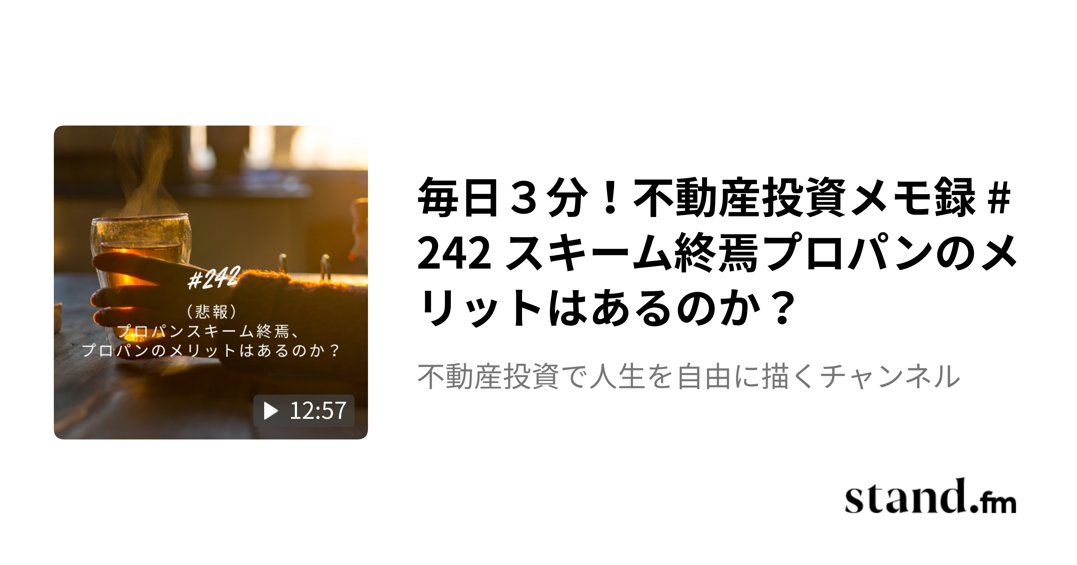 フォロワー200名突破しました!ぐんぐん増えています!! 上記の楽待コラムの内容をStandFM(スタエフ)で音声解説しており、大好評頂いてます。