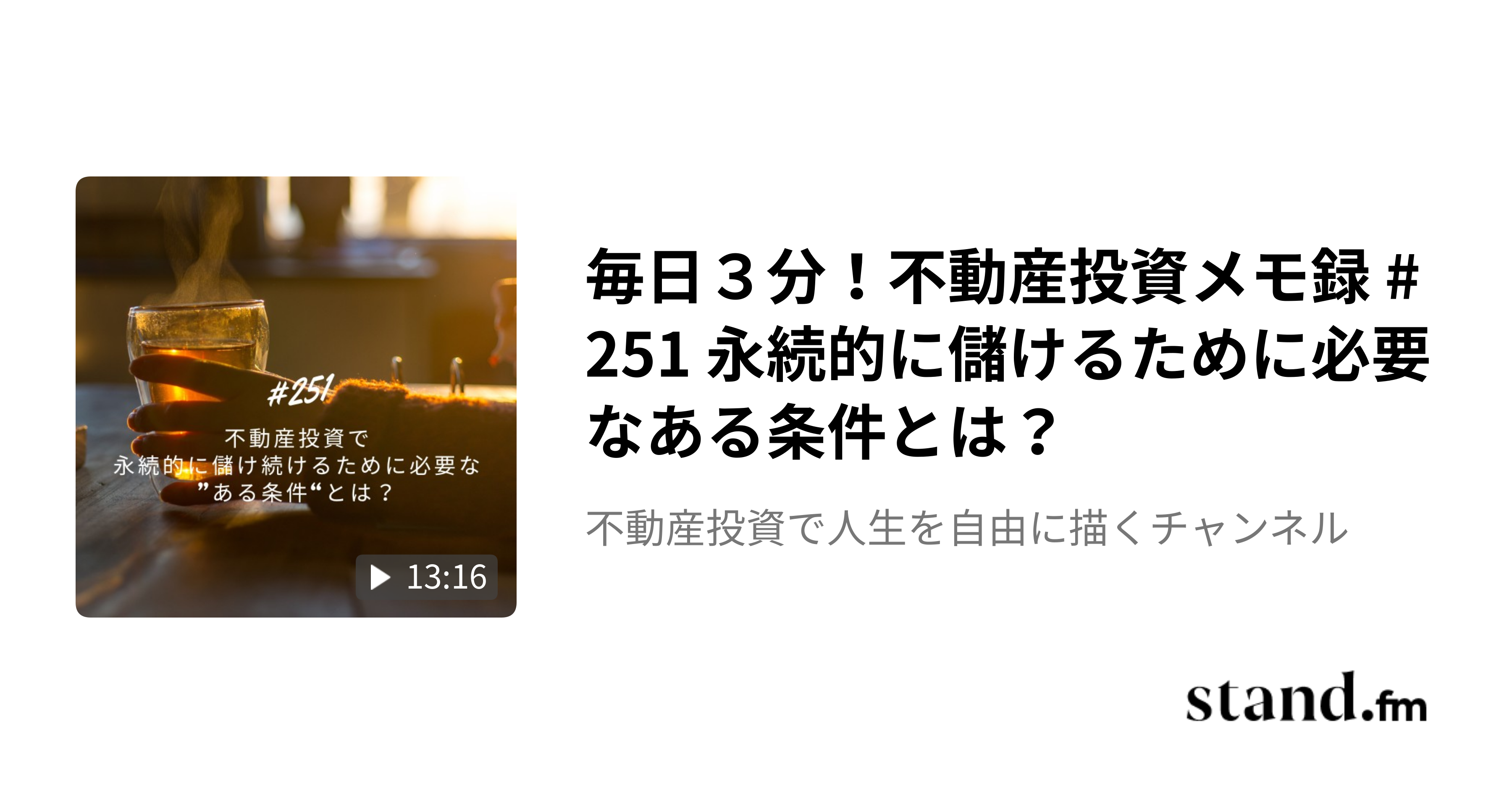 ▼毎日3分!不動産投資メモ録 #251 不動産投資で永続的に儲け続けるために必要な”ある条件“とは?