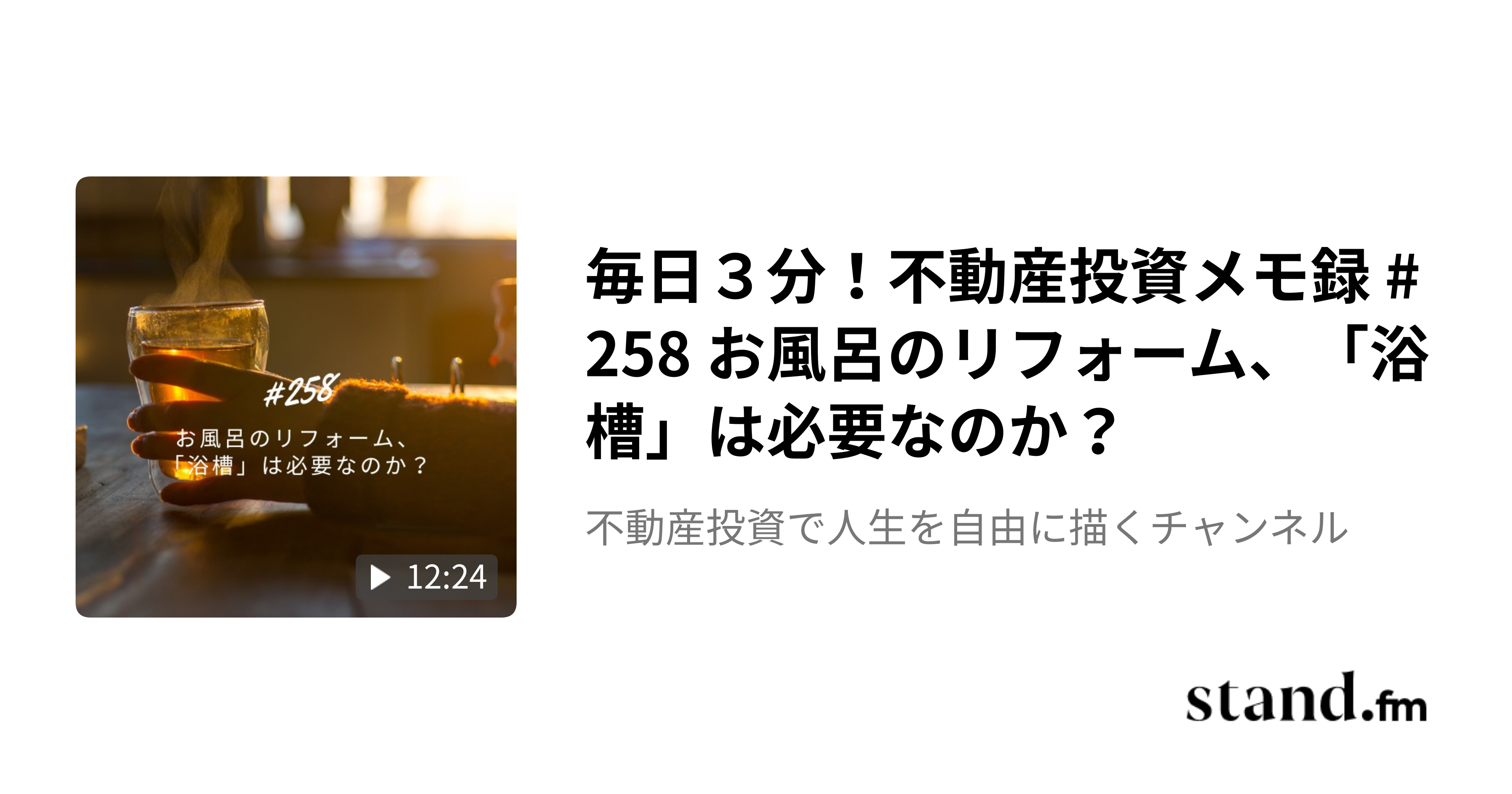 ▼毎日3分!不動産投資メモ録 #258 お風呂のリフォーム、「浴槽」は必須なのか?