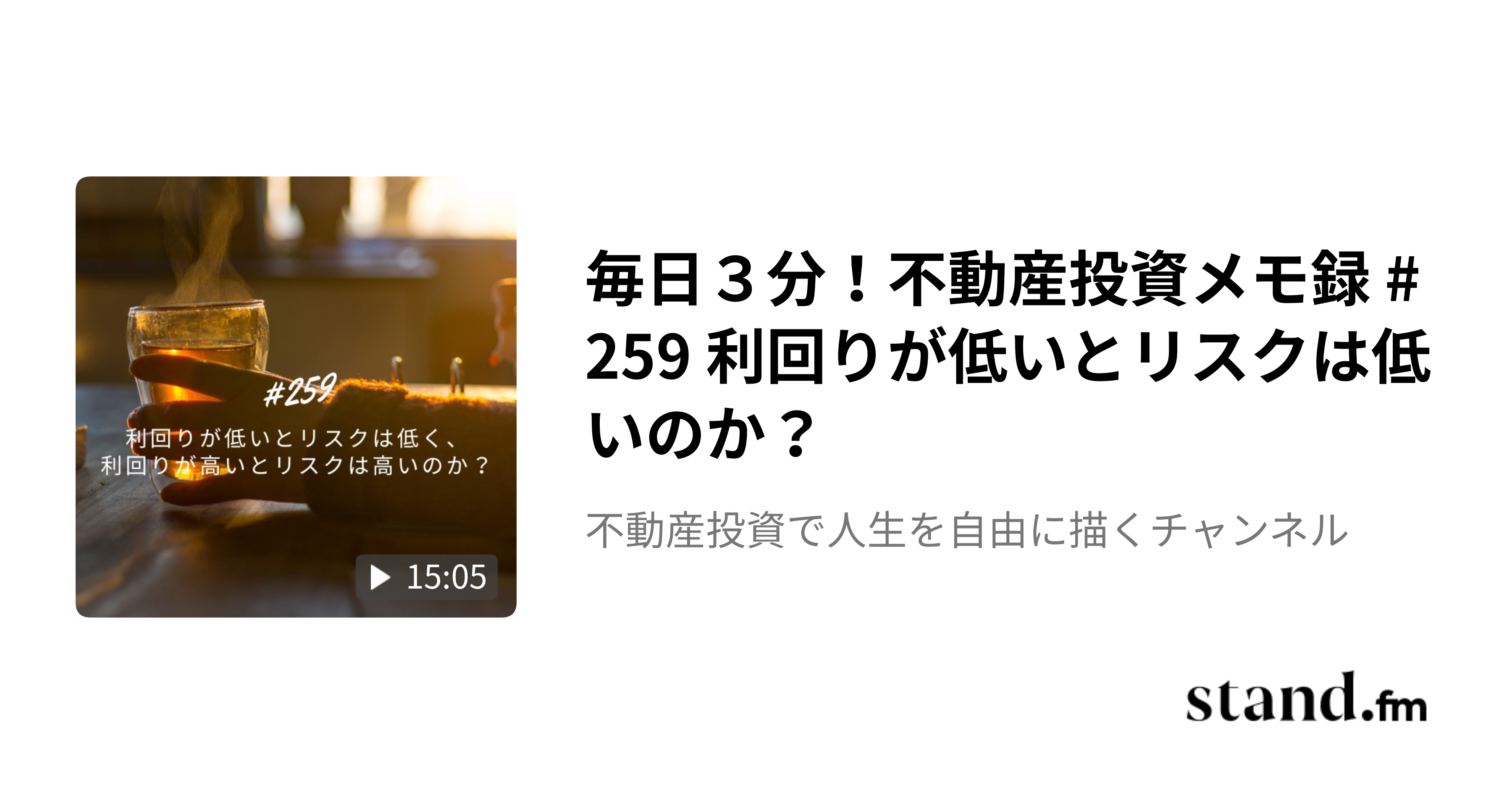 ▼毎日3分!不動産投資メモ録 #259 利回りが低いとリスクは低く、利回りが高いとリスクは高いのか?
