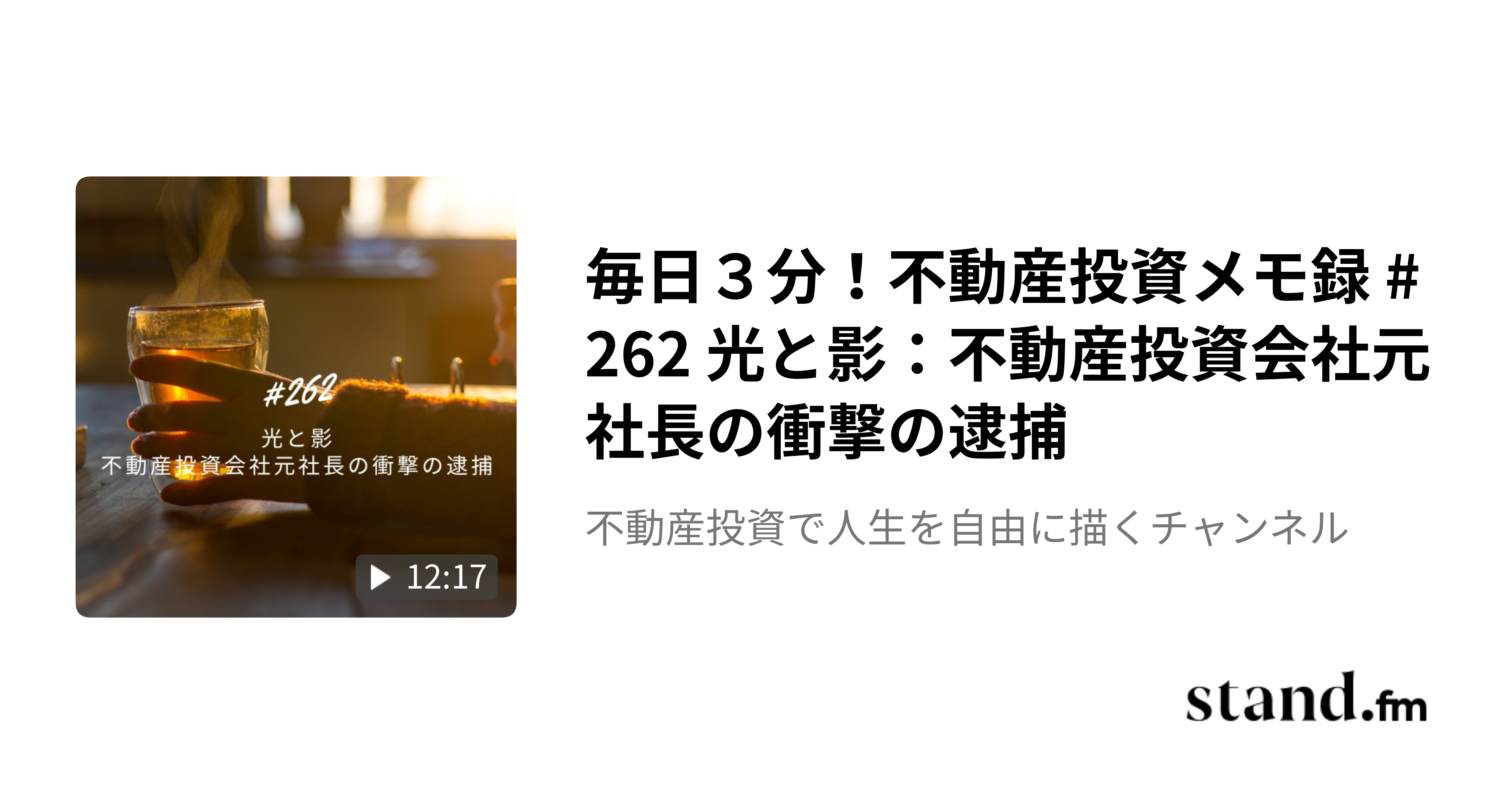 ▼毎日3分!不動産投資メモ録 #262 光と影:不動産投資会社元社長の衝撃の逮捕