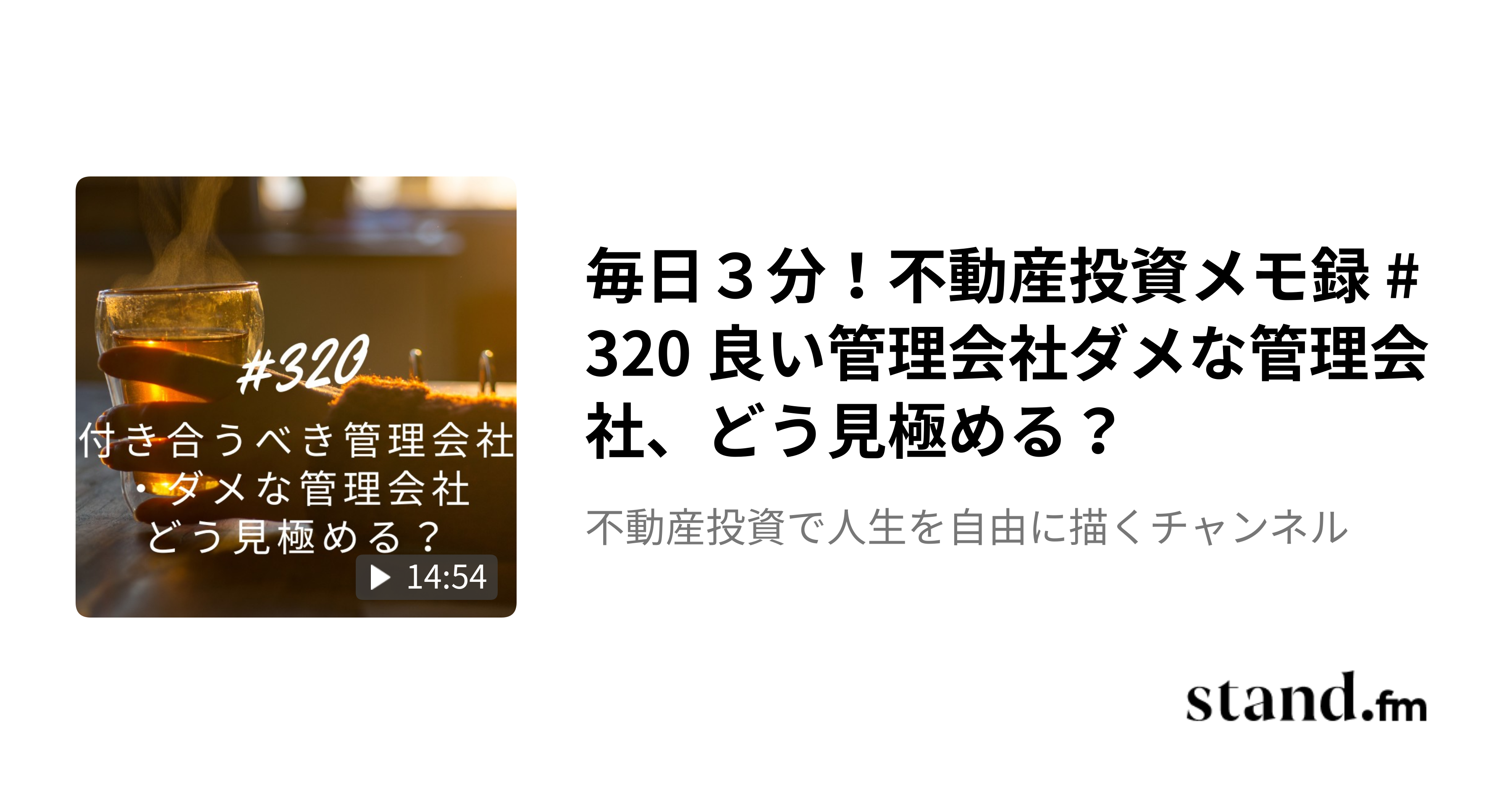 ▼毎日3分!不動産投資メモ録 #320 付き合うべき管理会社・ダメな管理会社、どう見極める?
