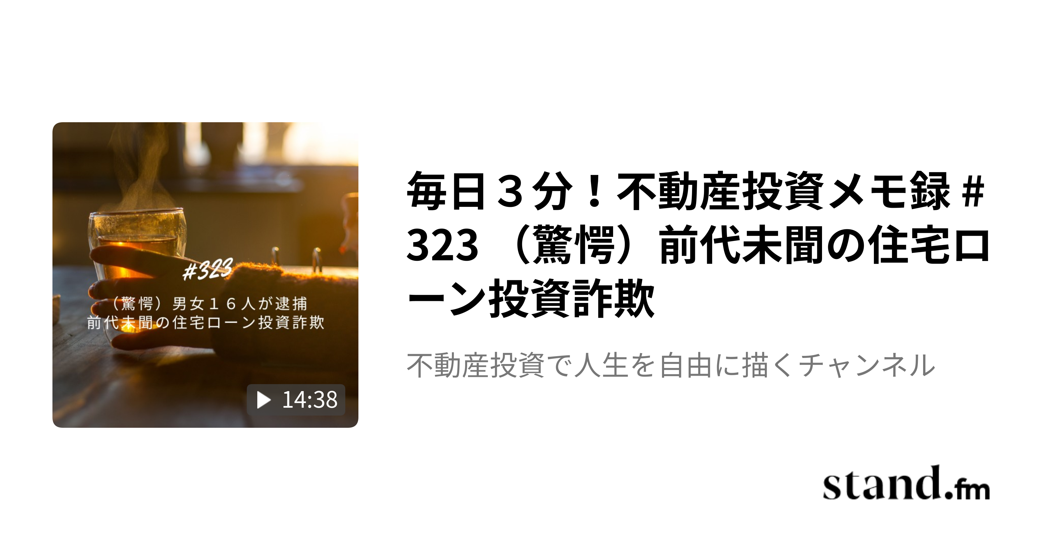 ▼毎日3分!不動産投資メモ録 #323 (驚愕)男女16人が逮捕、前代未聞の住宅ローン投資詐欺