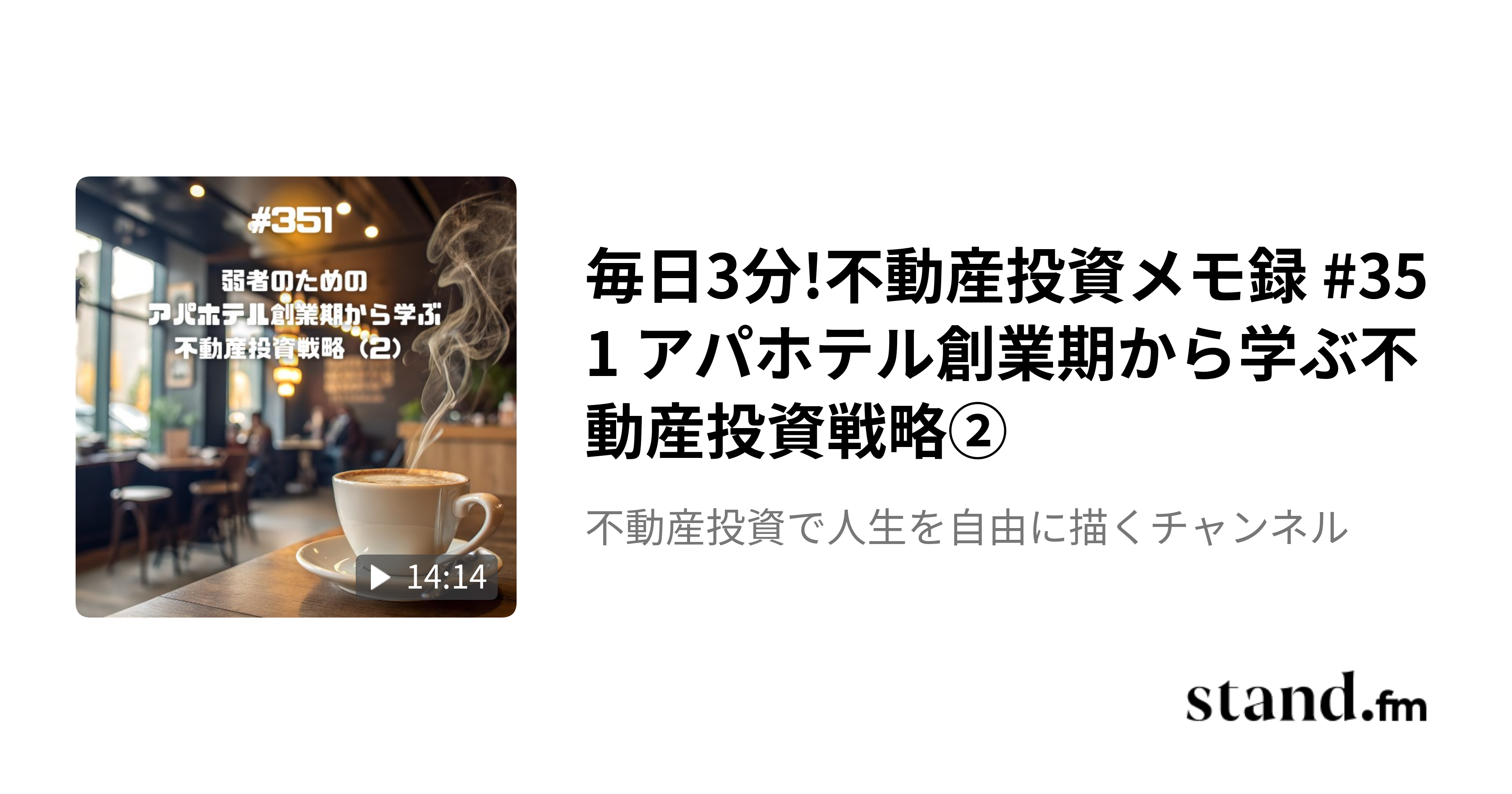 ▼毎日3分!不動産投資メモ録 #351 弱者のためのアパホテル創業期から学ぶ不動産投資戦略(2)