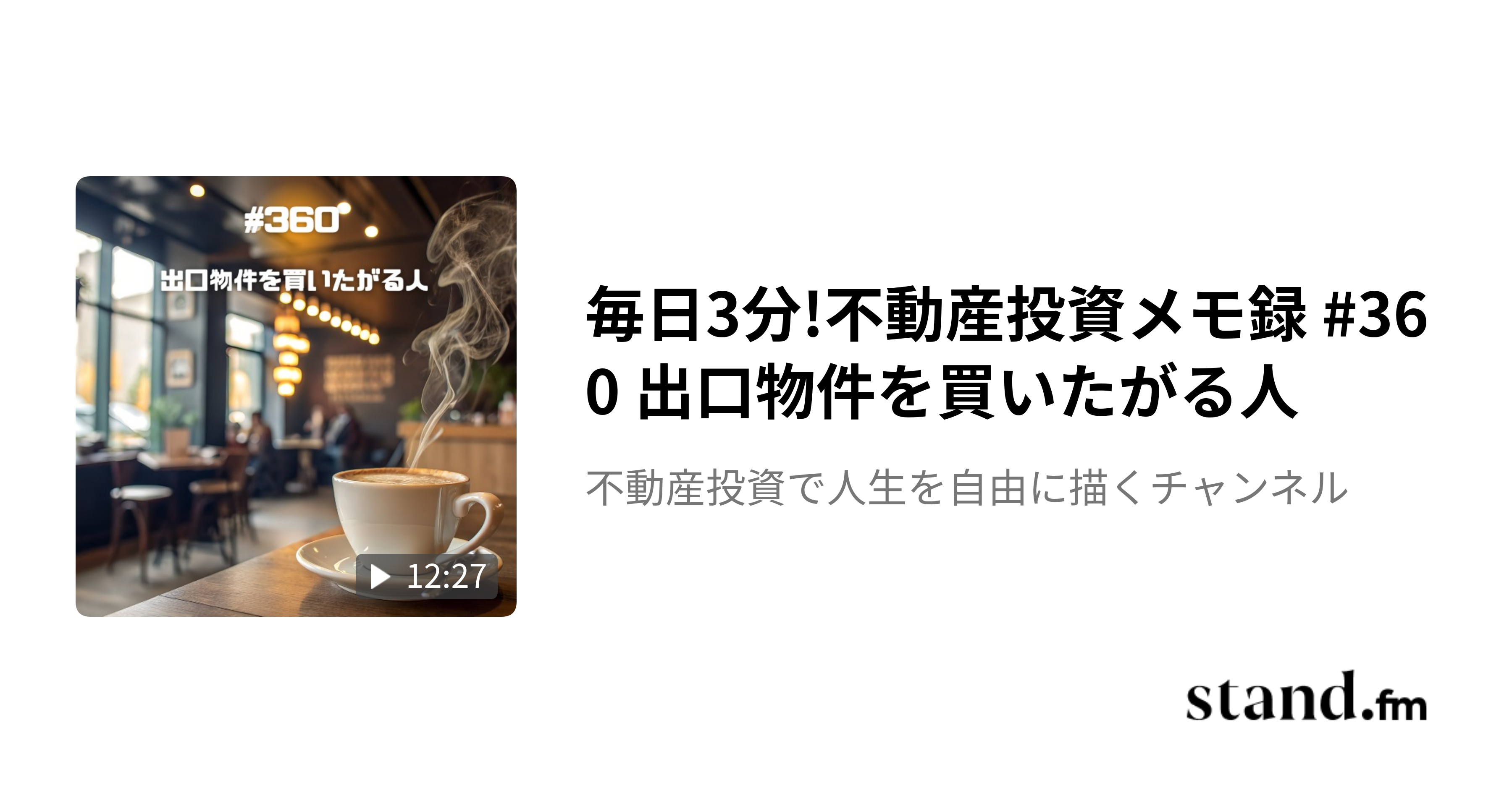 ▼毎日3分!不動産投資メモ録 #360 出口物件を買いたがる人