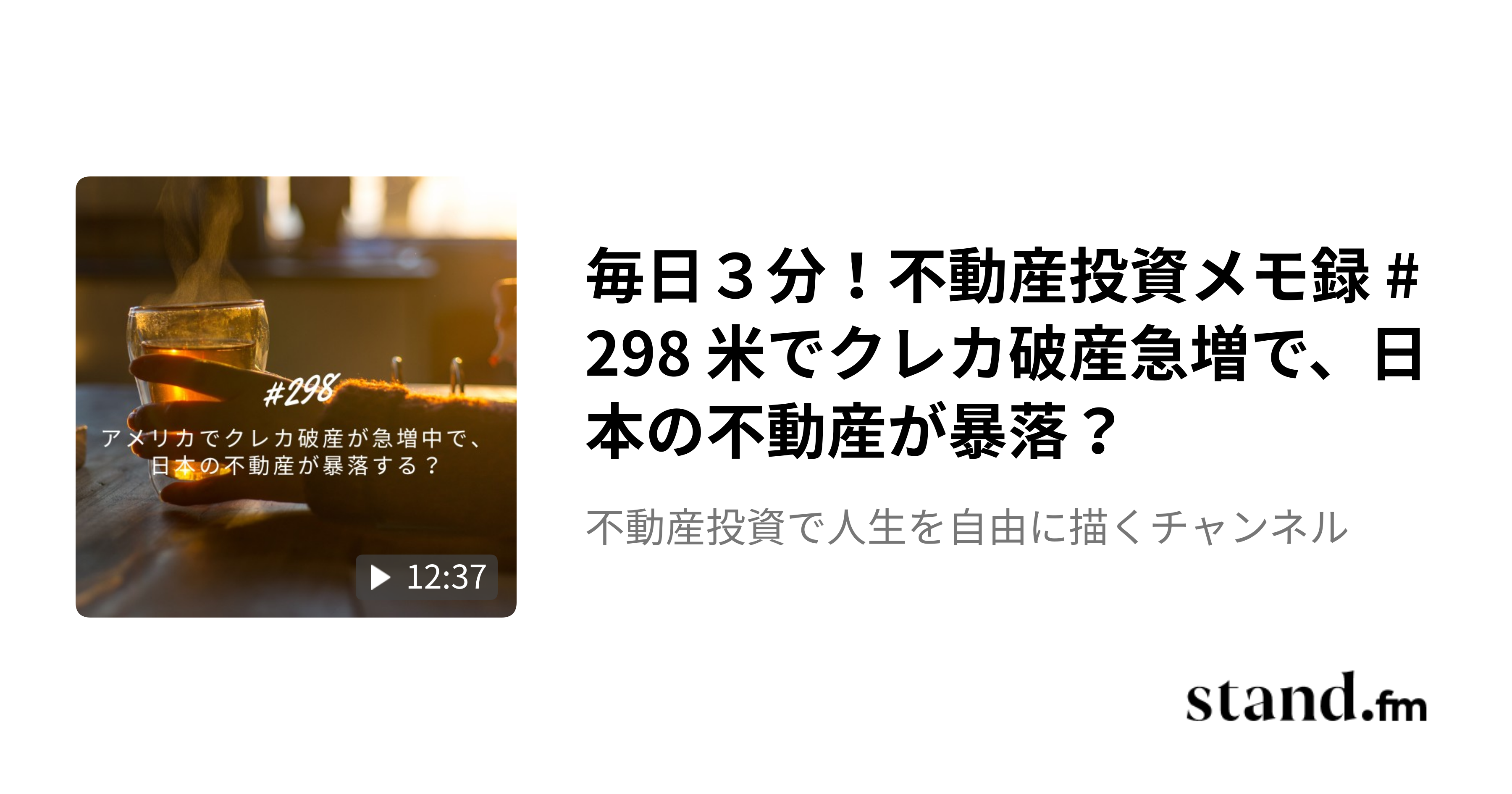 フォロワー240名突破しました!ぐんぐん増えています!! 上記の楽待コラムの内容をStandFM(スタエフ)で音声解説しており、大好評頂いてます。