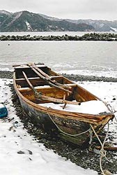 小浜署は、市漁協を通じて「不審者が着替えた跡や見かけないたばこの吸い殻を発見した時は連絡を」などと地元の約百戸に放送。通報もなく、県警は「過去の工作船潜入事件は母船、子船、ゴムボートの順番で上陸するのが一般的で、特有の構造もない」と判断。海岸は漂着ごみが多く、船も漂着物とみている。