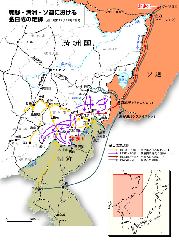 第2次大戦中、金日成が旧ソ連極東部に滞在していたことは北朝鮮においても公然の秘密だったが、過去に発行された公式伝記には、その事実は一行も書かれていなかった。