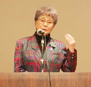 会場は子どもを持つ主婦ら約400人で満席。早紀江さんが北朝鮮で撮影されためぐみさんの写真について、「悲しい目、おびえた目。娘の不幸な身の上を考えると、胸が張り裂けそうになる」と語ると、会場のあちこちからすすり泣く声が漏れた。