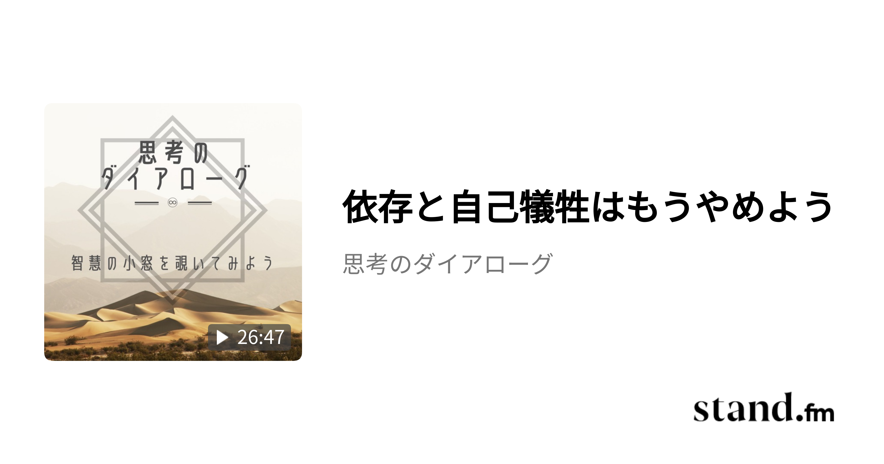 依存と自己犠牲はもうやめよう - 思考のダイアローグ | stand.fm12月20日で木星魚座期が終了して、ついに牡羊座に入りました。魚座の依存と自己犠牲が私の生活では実家の母の認知症の対応にしっかりと出ましたよ、っておはなしをしています。みなさんにはどんな形の依存と自己犠牲がみられたでしょうか? ▶︎在処~arika https://arika0831.com/ ▶︎在処Instagram …stand.fm