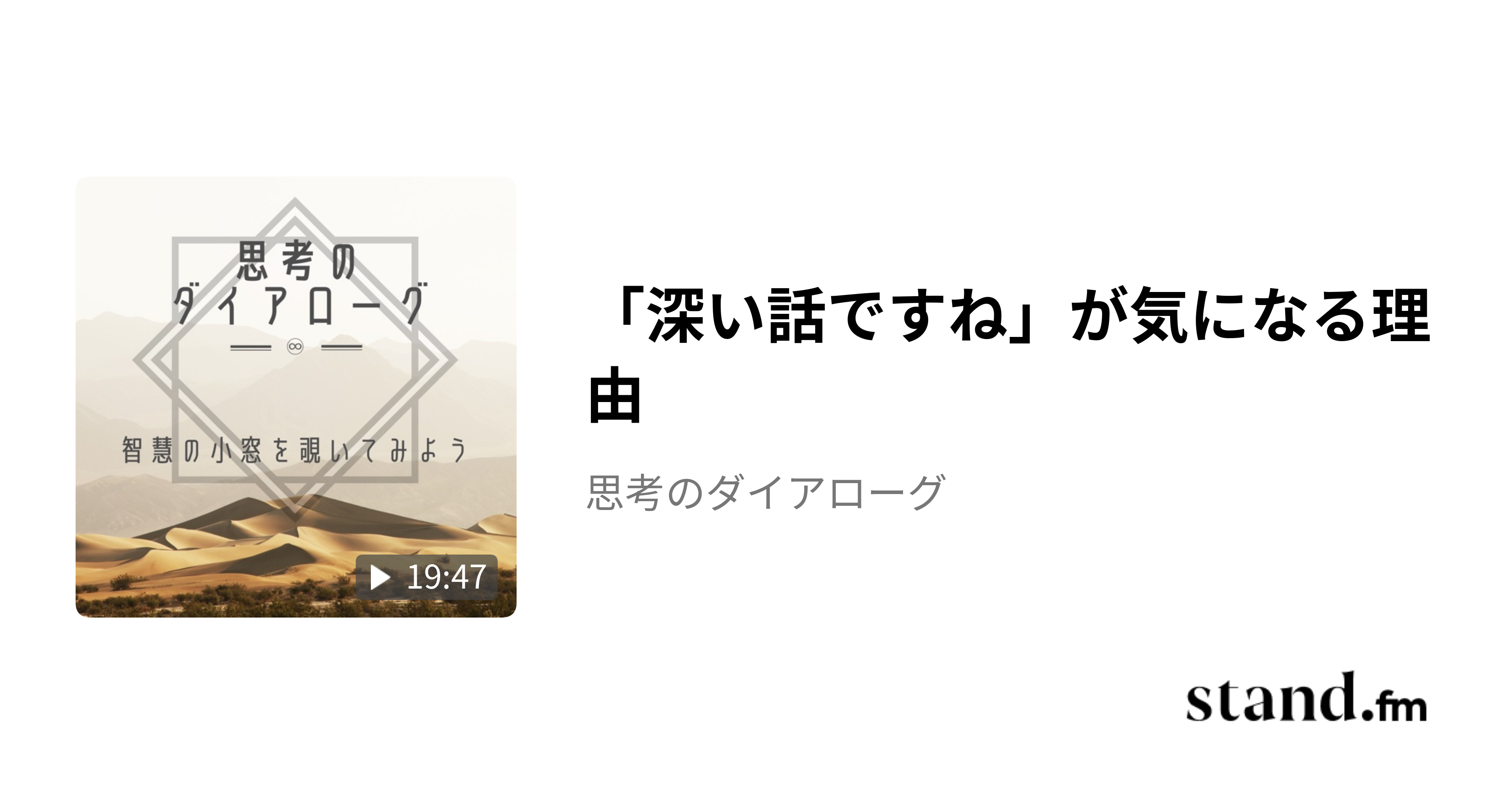 そうなると深い話とは、意味のある有意義な話ということなのでしょうが、それに中身をちゃんとわかってそう言っているのかが疑問なんです。「深い話ですね」で終わらせないで、ちゃんと「コレコレがいいお話だと思いました」って言って欲しいんですよね。