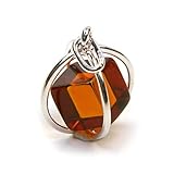 キューブ型の琥珀とスターリングシルバーを組み合わせた球型コンテンポラリーペンダント(ミレニアム.../Noda