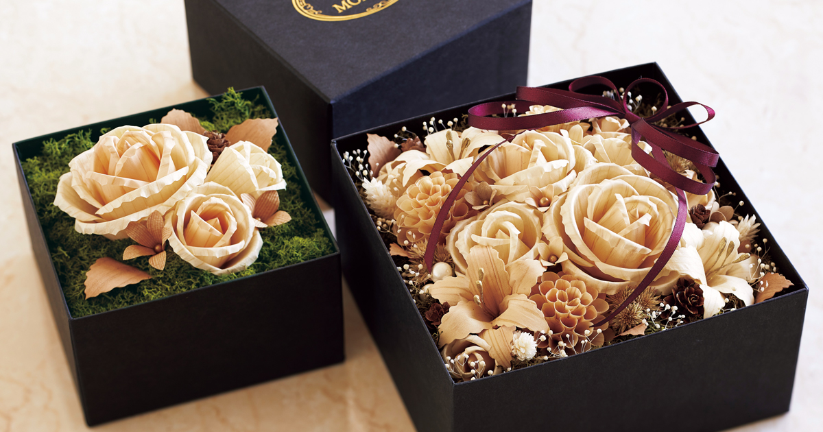 三越では木工工芸品が欲しくなる 木のお花で 年々 色が変って行くそうだ 三越オリジナルよりも箱入りが素敵だなぁ