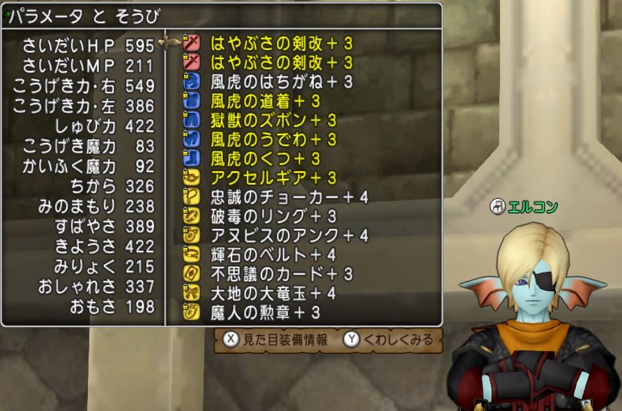 ということで、敵の守備力を無視してダメージを与えられる会心特化はやぶさの剣改二刀流のバトマス(通称ペチマス)を火力枠として採用しました。