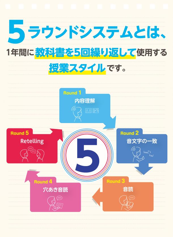 5ラウンドシステムではリスニングとスピーキングが授業の中心になるようです。
