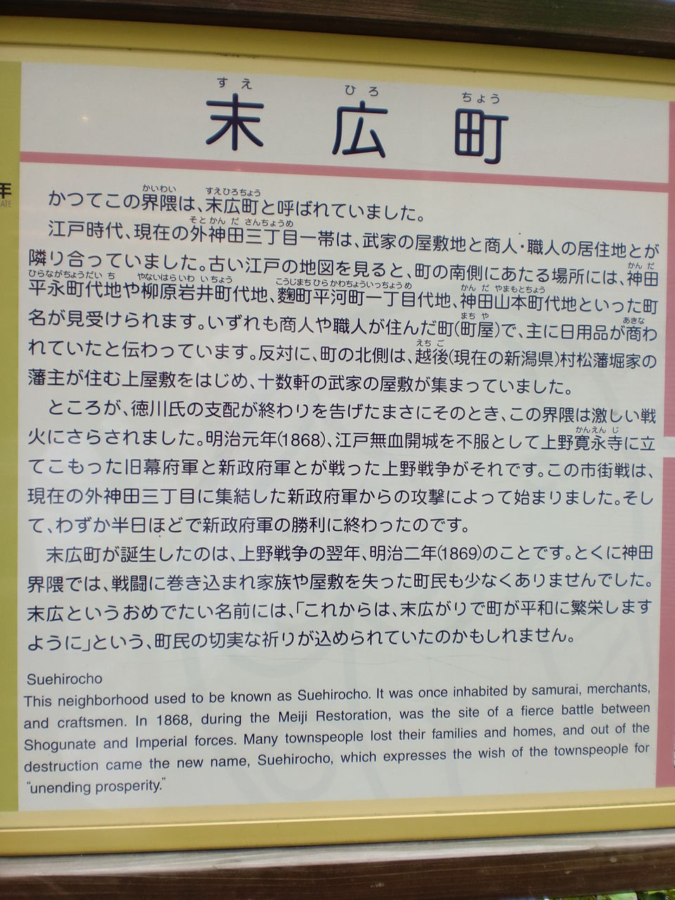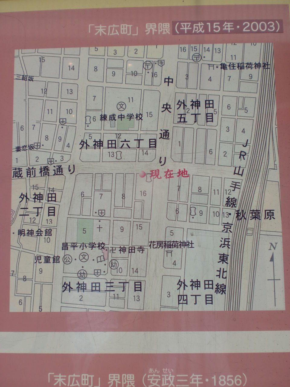 ( ´・ω・) 由来版のある場所は、昌平橋の手前(秋葉原側)です。画像はクリックで拡大します。町名の通り、江戸時代初期には旅籠が軒を連ねていました。ちなみに、江戸東京博物館に神田旅籠町の山車のミニ模型があります。