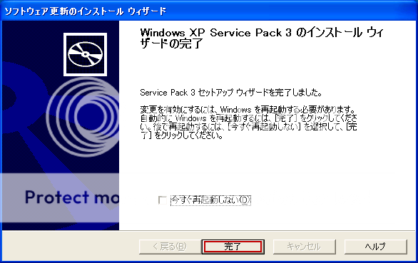 2.ダウンロード完了した後、それをダブルクリック(左クリック連続二回)したら、バージョンアップが開始。WinXPを再起動したら、バージョンがService Pack 3になる。
