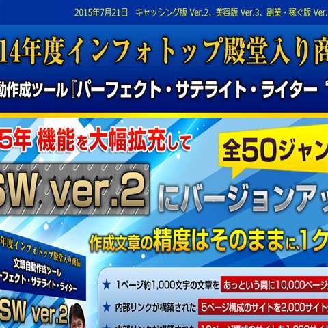 文章自動作成ツール『PSW_Ver.2_1パーソナル版』2014年インフォトップ殿堂入り商品“PSW”のバージョンアップ版のパーソナル仕様登場!