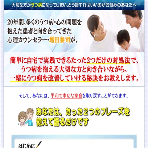 えっ?こんな簡単なことに気をつけるだけで、うつ病の家族がぐんぐん元気になるなんて!「うつ病の家族への対応マニュアル」・・・・・≫続きはこちら